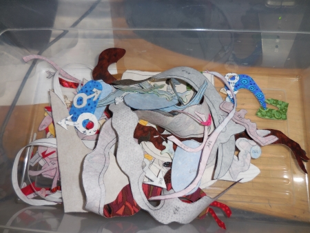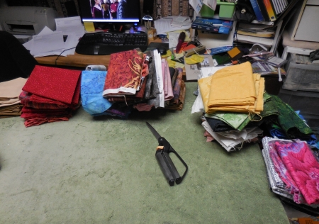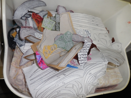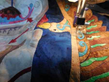 That late-night bad judgement that tells me it’s OK, that I’m really not tired (I wasn’t. I had a really hard time falling asleep, even though it was almost 1 AM)…I don’t know what that is. It’s the part of me that wants a different life, I guess. I’m totally jealous of all those fulltime quilt artists I meet, the ones who have a marketable skill and can sell classes and books about their technique (OK, I really don’t want to do classes, to be honest), the ones who have a partner who fully finances their habit, their drive. Man oh man. Do they know how lucky they are? Do they know what it’s like to work a 60-hour-a-week job and come home to screaming drama and cooking dinner and no one will help you take out the trash (yes, we were doing that at 10 PM and she was yelling at me then too, because it was my fault we hadn’t done it earlier). Bloody hell. Maybe I would just be a shitty lazy artist if I didn’t have all that hanging over me. Maybe I would never get anything done because I wouldn’t have this incredible drive to create something to make up for all the other crap. Maybe I’d have given up on art completely.