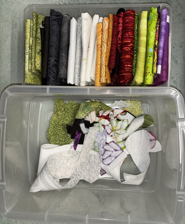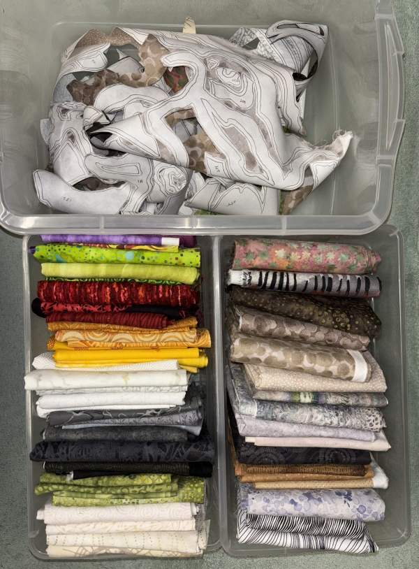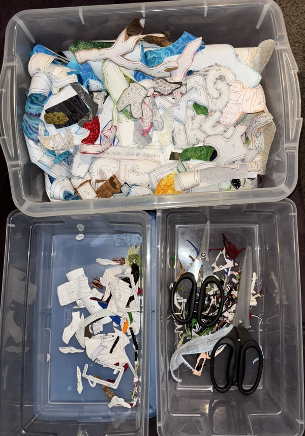 Until then, here was my makeshift cutting station last night. Yes, she wanted to sit in all the boxes and play with fabric pieces (who wouldn’t?), so I played with her until she was tired enough to settle and apparently watch TV.