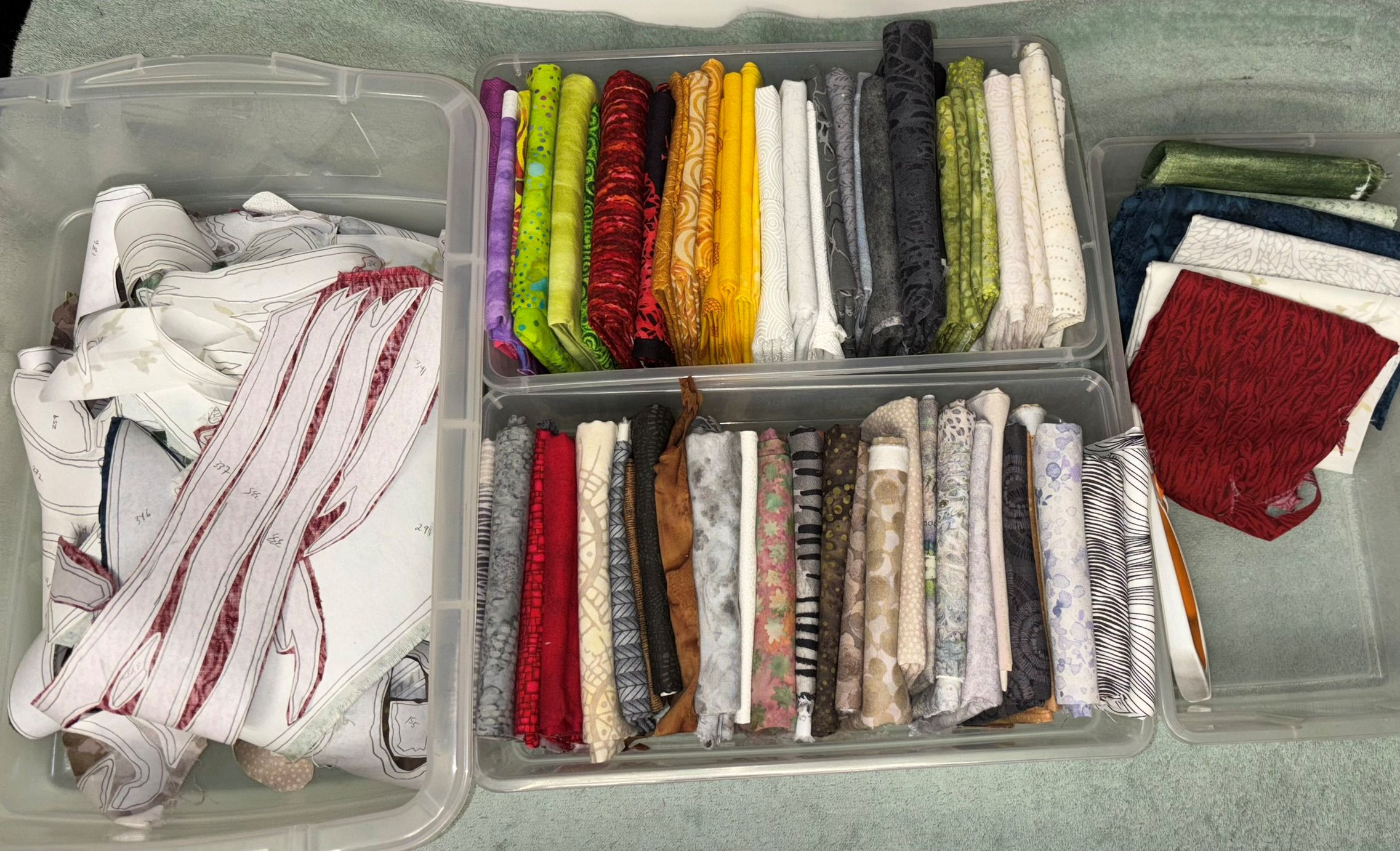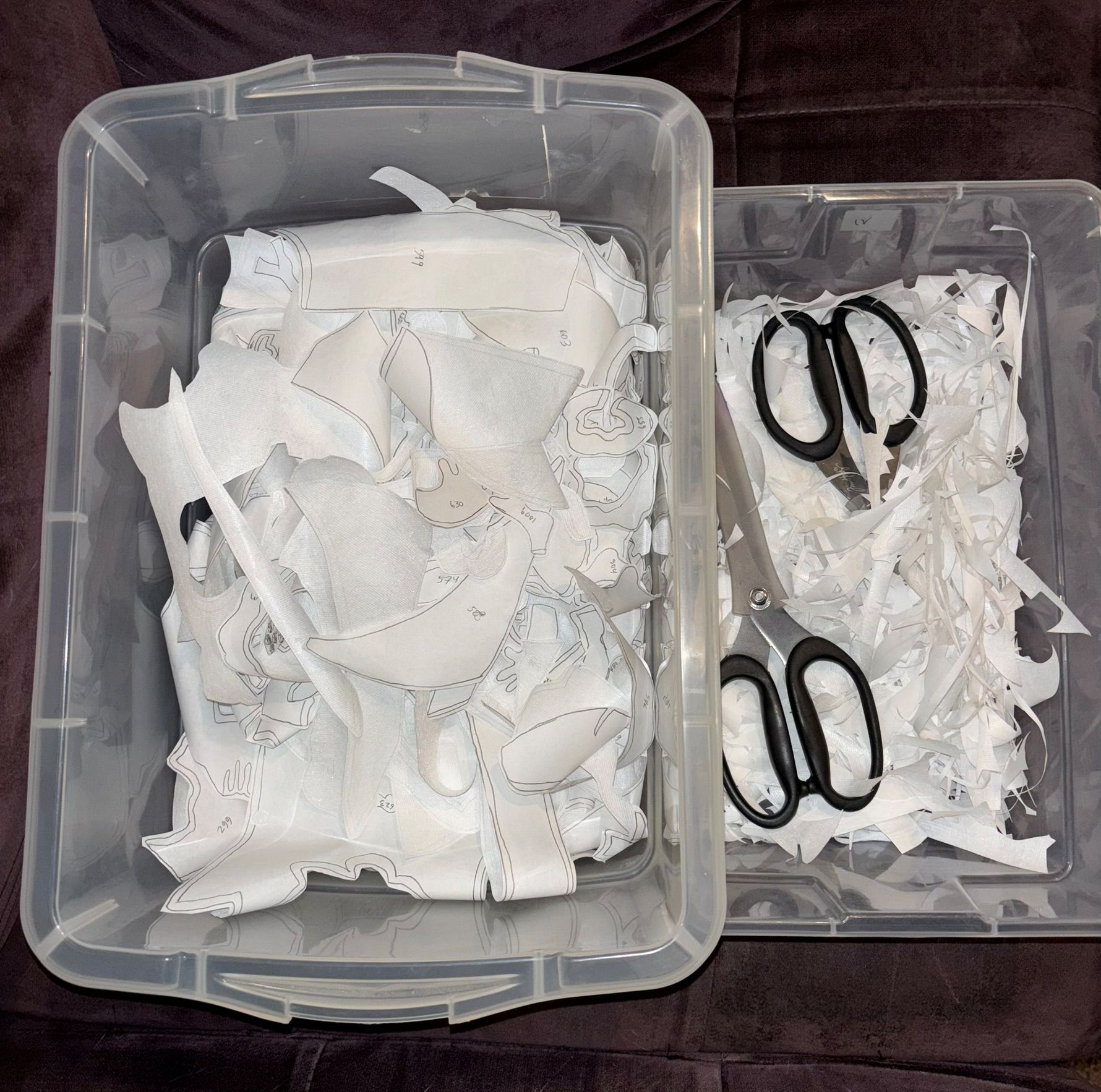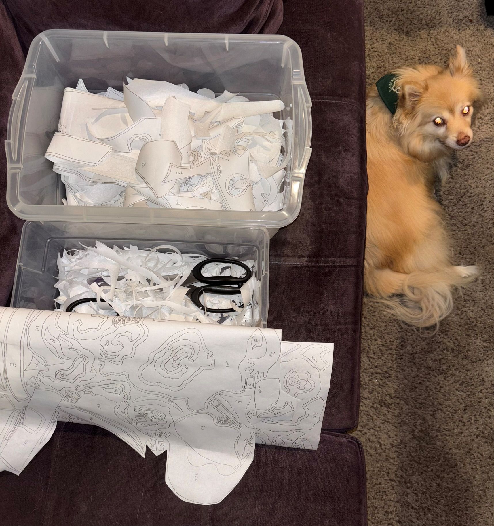 Until then, here was my makeshift cutting station last night. Yes, she wanted to sit in all the boxes and play with fabric pieces (who wouldn’t?), so I played with her until she was tired enough to settle and apparently watch TV.