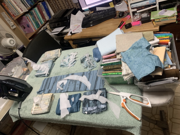 Can’t remember what. Picking out the sky fabrics here…this was Friday night, I think?
