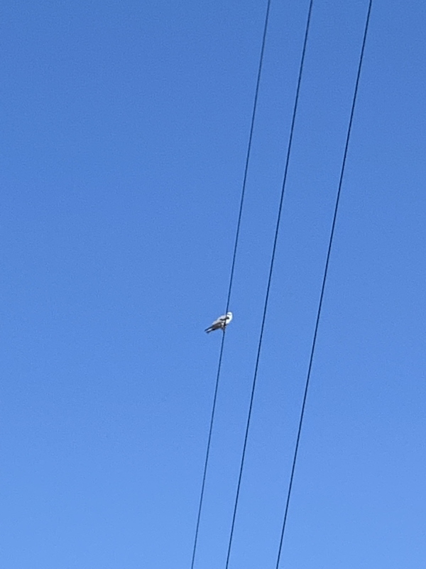 It’s a bird I only see at Sweetwater. Looks like a hawk but mostly white and a little gray. Stared at me.
