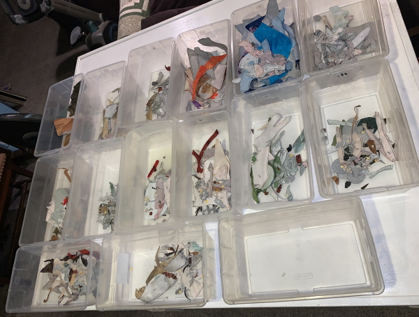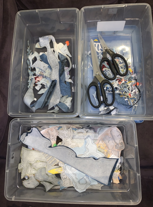 I haven’t gotten very far…the top left box is all trimmed. The bottom box is to-be-trimmed. It’s gonna be a while.