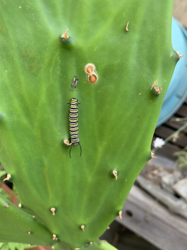 A very confused caterpillar…I’m not sure where it went from the cactus (the milkweed was right next to it)…but I can’t find it anymore.