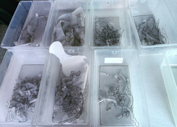So many tiny pieces. You can see the 400s box has most of the big sky pieces in it. Everything else is small as fuck. I know, I know…I designed the thing. I’m the one who is also hoping it’s done in time, but who the hell knows.