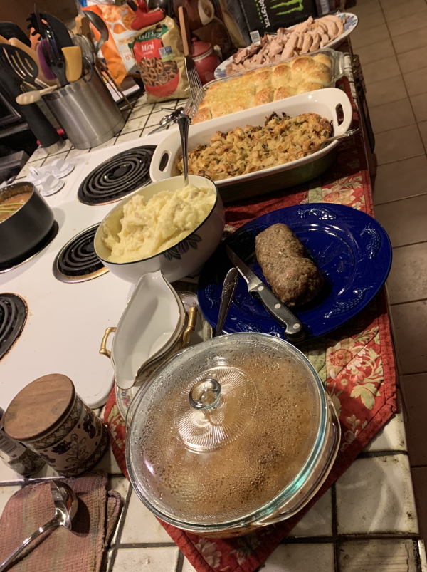 I also blew leaves off half the roof, terrified of being up there, trimmed a bunch of stuff, dumped plant matter in greenery trashcans, finally rehung the art in the hallway…