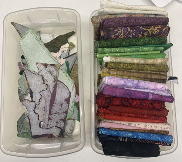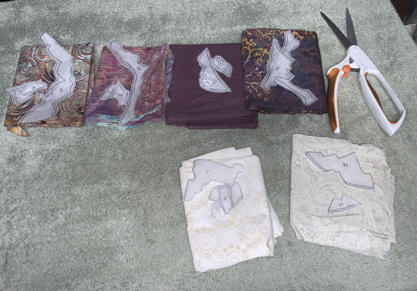I used 99 fabrics and it took 9 hours and 45 minutes to pick them all and iron them to fabric. In general, this is a very muted quilt. The bright colors are in a few small locations. It’ll be interesting to see it all ironed together.