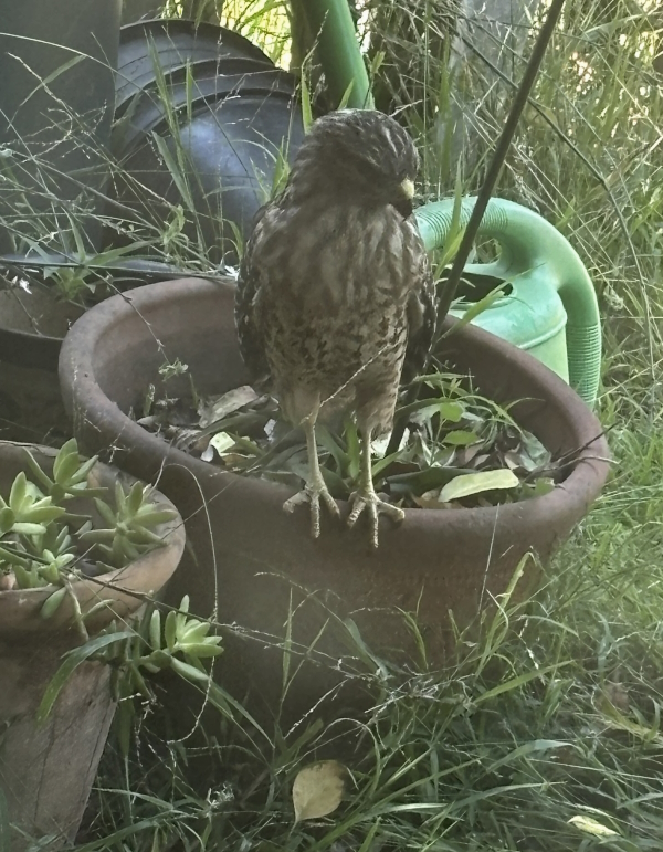 Haven’t seen the parents for a while (would I know? I don’t know if I would know…but they sound different). One seems to hang out here all the time; the other two seem to range around a bit more. Hoping they find a nest and/or learn to stop yelling all the time (much like the neighbor children?) relatively soon. But I’m glad to add them and their mouse/rat-catching to my ecosystem here.