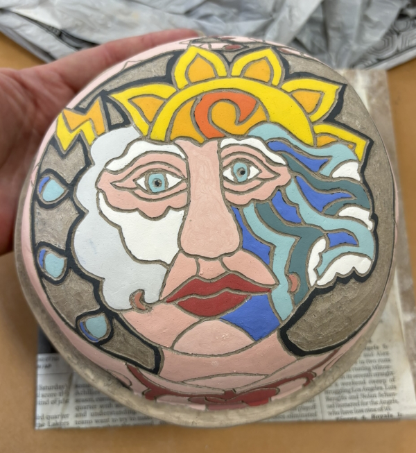 So I’ll probably do this on the big sgraffito piece that’s on my shelf at the studio right now.