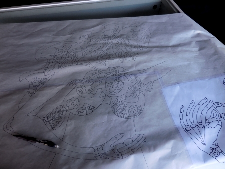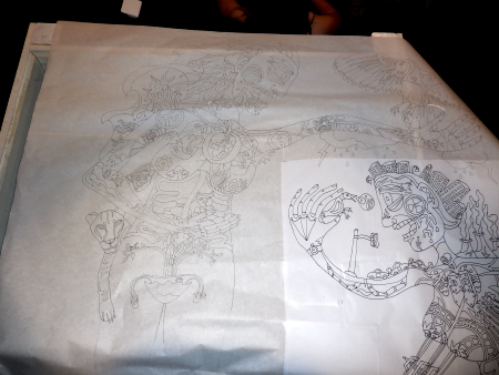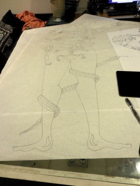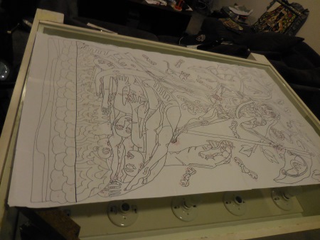 Of course, technically it has nudity in it, so it can’t go into any of the shows coming up that need smaller pieces. I’m tired of making things FOR something, though, even though I don’t mind the themes that I’ve been in…sometimes you just have to make the stuff you WANT to make. I’m getting a wave of that feeling coming on…strong. I traced this also because I was watching something on Netflix that I couldn’t watch in my studio and I wanted to finish the episode.