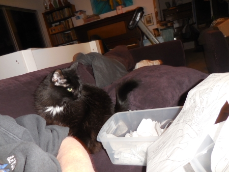 And one section of the floor, I think the cats had knocked a bunch of stuff down (they get a bit rambunctious sometimes), so I needed to clean that up. Finding floor space in here has been a priority this last month. Two feet at a time, people. Two square feet is all I ask.