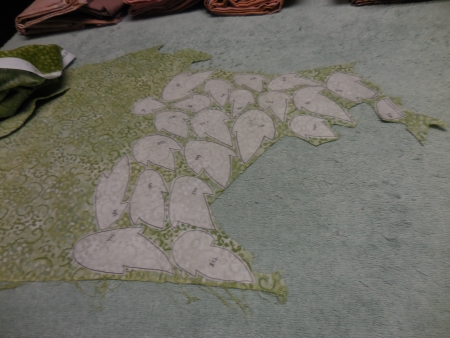 They beat an Alaskan team 5-1. I’m sure that team was a little hampered by the over-80-degree weather. Then I came home and helped dad do some yard things and went and bought two trees with him to block off that big open space that has been there since April? March? Don’t even remember how long. I need to go out there today and dig holes and trim off dead stuff and be a responsible homeowner (my neighbors will be thrilled). And I went to the gym. See, this is where time goes. But at the gym, I wrote…yes, I’m still writing. The story’s still not done. And I finished my book (the one I was reading). And these were good things. And then I traced some more Wonder Under for another piece, a small one that’s been lying around for a good long while…