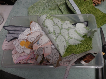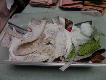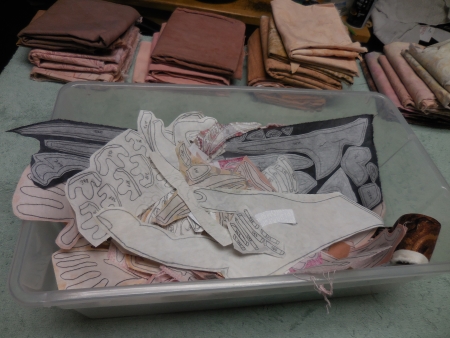 Which is taking significantly more time than I usually take, mostly because it’s complicated to figure out what is overlapping where, and to make sure I have all the pieces for that body, and that the fabrics don’t overlap in the wrong way.
