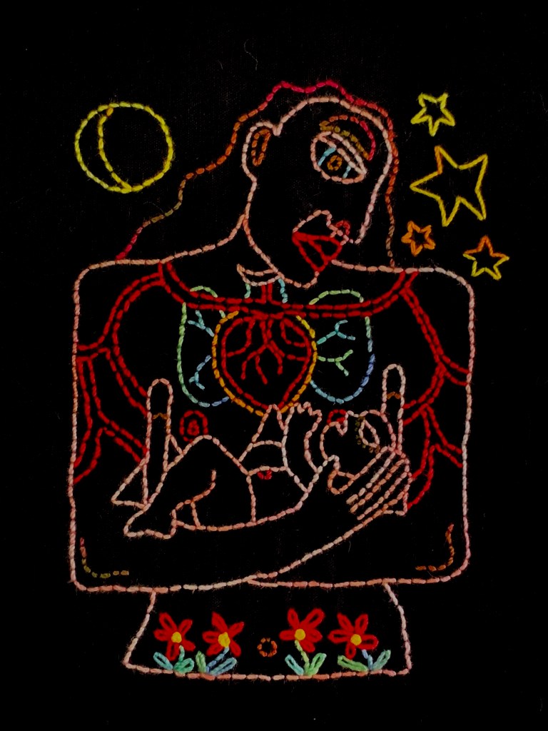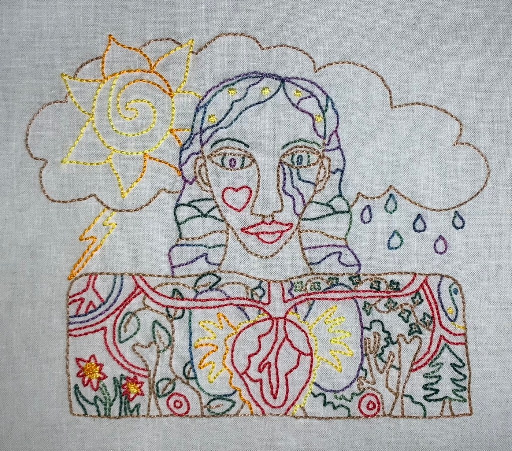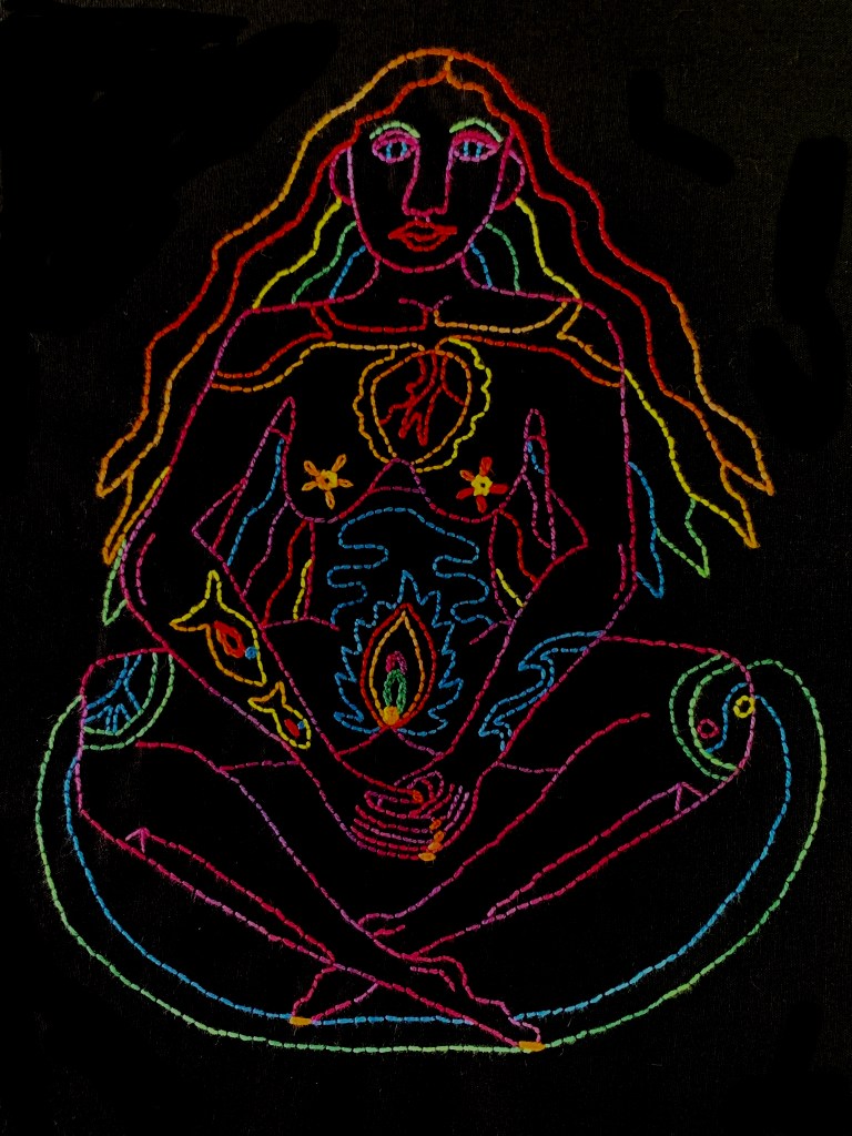 In 2019, I started designing embroidery patterns of Earth Mothers for Global Artisans. They sell as patterns and kits, which have the same threads I used for the samples. You can see the completed samples below. The samples are for sale as noted, except for four (three are traveling with GA and one already sold). The prices are based on stitching time. I do value my time. The samples are currently unmounted and unfinished, although I’m in the process of putting them on Etsy in hoops or alternative hanging devices, so check there first. If mounting on a hoop or alternative finishing is something you’re interested in, we can have a conversation. The patterns all fit on 8×10 paper, so some of them are larger than my samples.