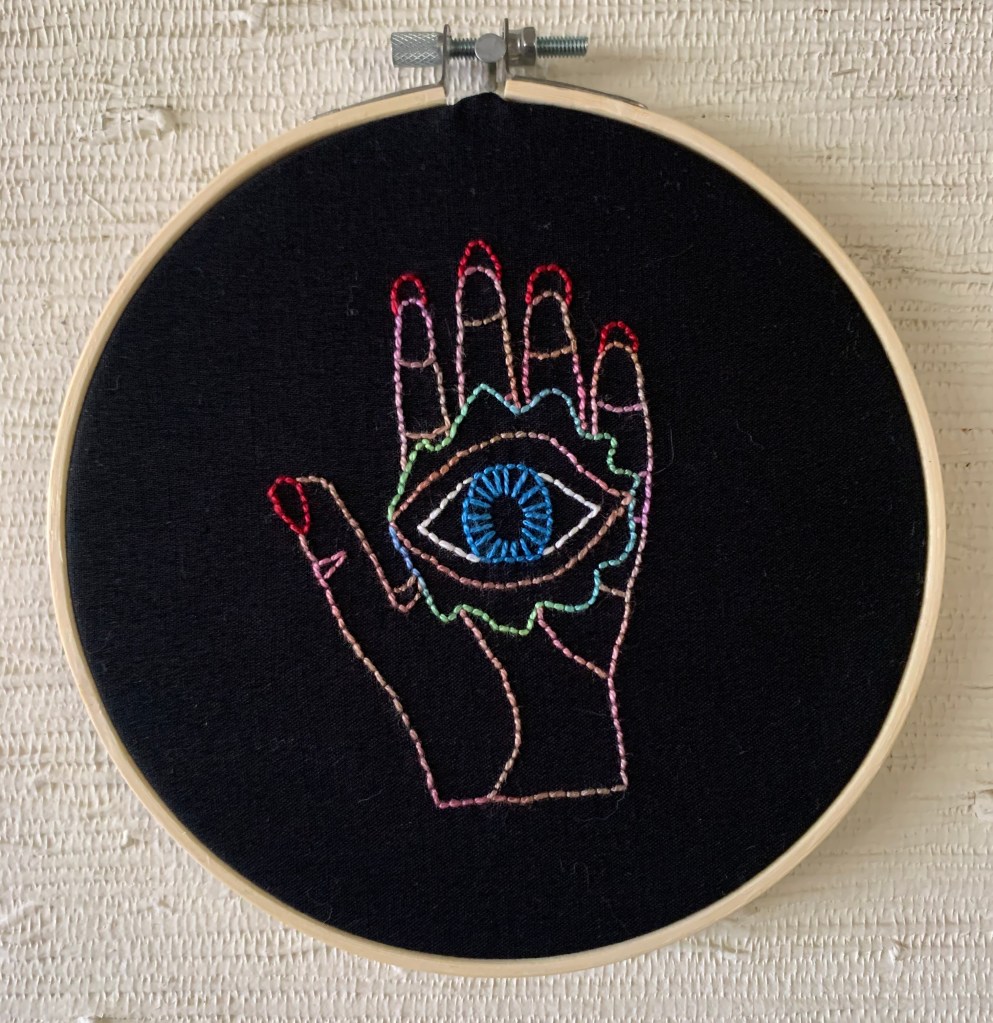 And Hand and Eye, July 2020, also on Etsy, 6″ hoop, $110.