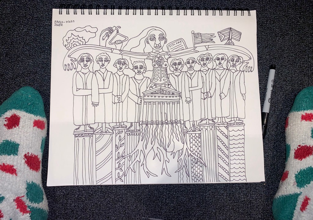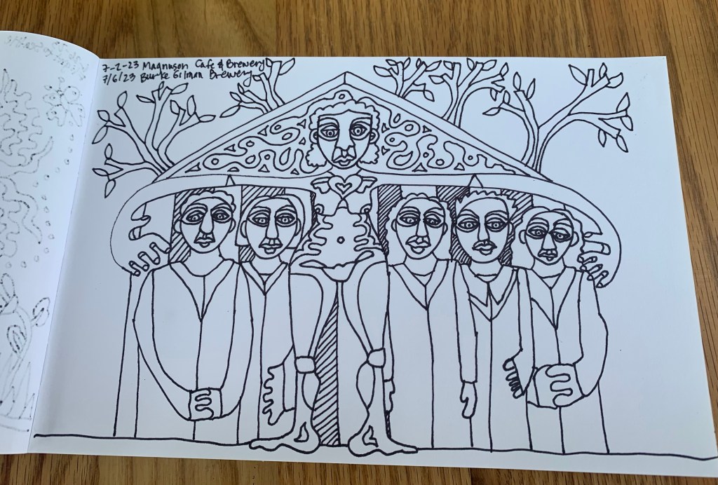 So it’s still hot this week coming up. I’m hoping to get the drawing to the ink stage, at least, or getting there. It’s big. I don’t like NOT working on something, so yes, I’m not taking a break. It’s summer so the other options are yardwork and housework. Eh. Screw that. Make art.