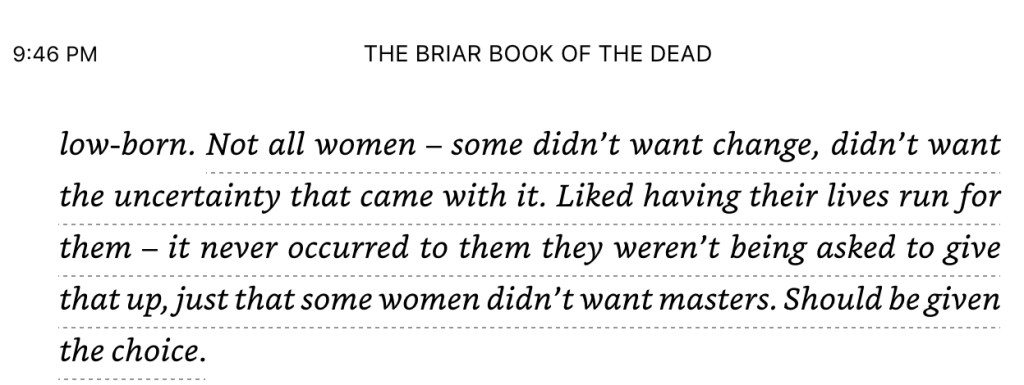 I SHOULD READ SOME OF THEM. True really. I should. It’s not like I’m not reading; I totally am, every day, for probably too long. Considering all the other shit I should be doing that I’m not. Procrastination? Not really. Just. OK. Maybe. Yeah. I mean, I’d rather read a chapter about demons and vampires than weed whack the slope or replace the solenoid in the sprinkler valve. IDK what my issue is with that, but my brain is just like screaming NO at me. OK brain. Chill. I won’t make you screw the thing in and attach the wires.