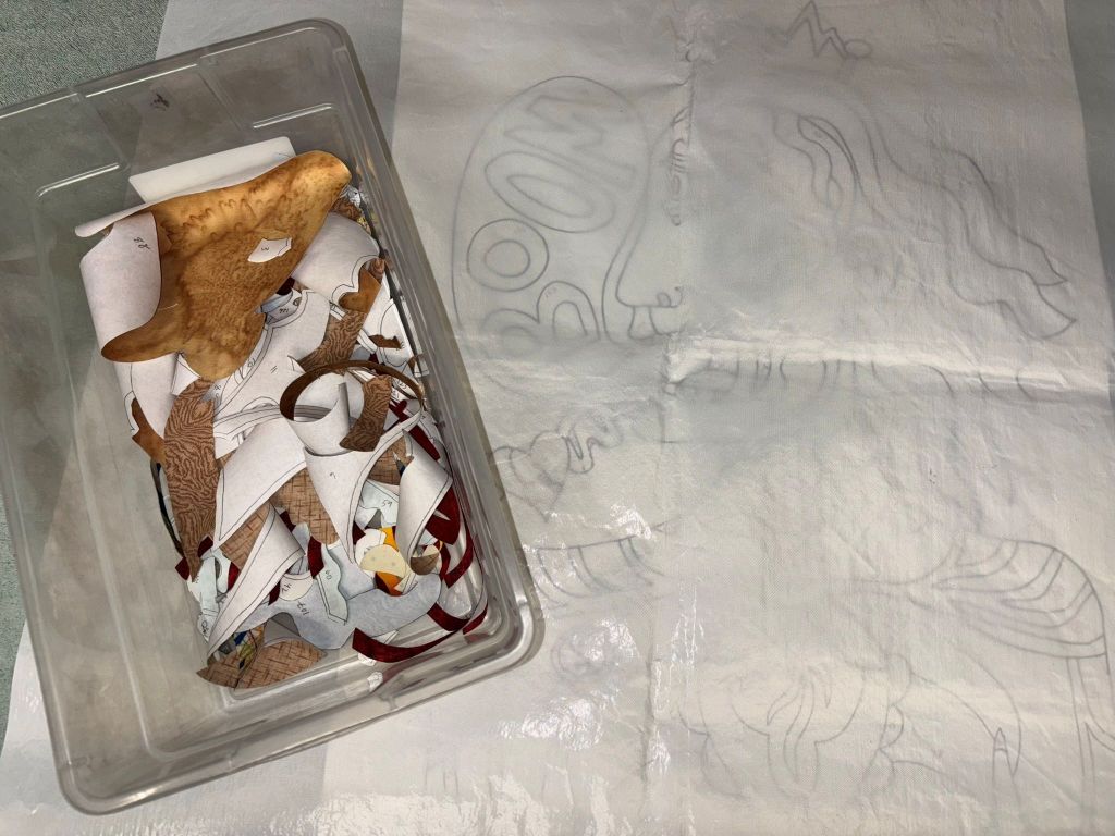 The clear vinyl plus stitching plus colored pencil work…