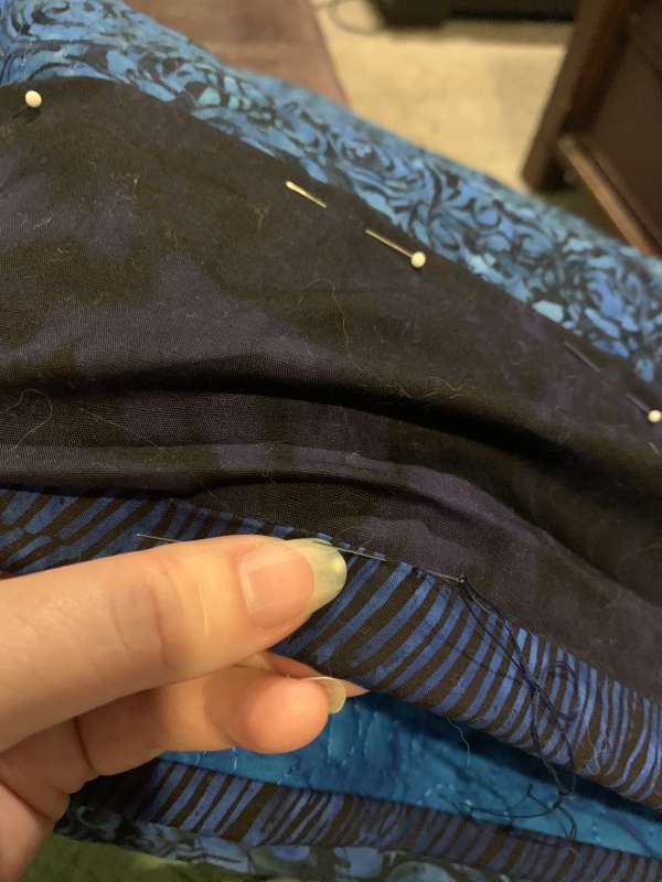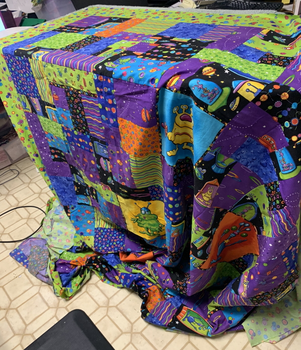 The ironing stage of this quilt has been slow. I mean, I’m doing an hour every night, but I’m not very fast about what gets done in that hour. This was poison oak and brain parts, I think. Oh, and a string of Christmas lights…