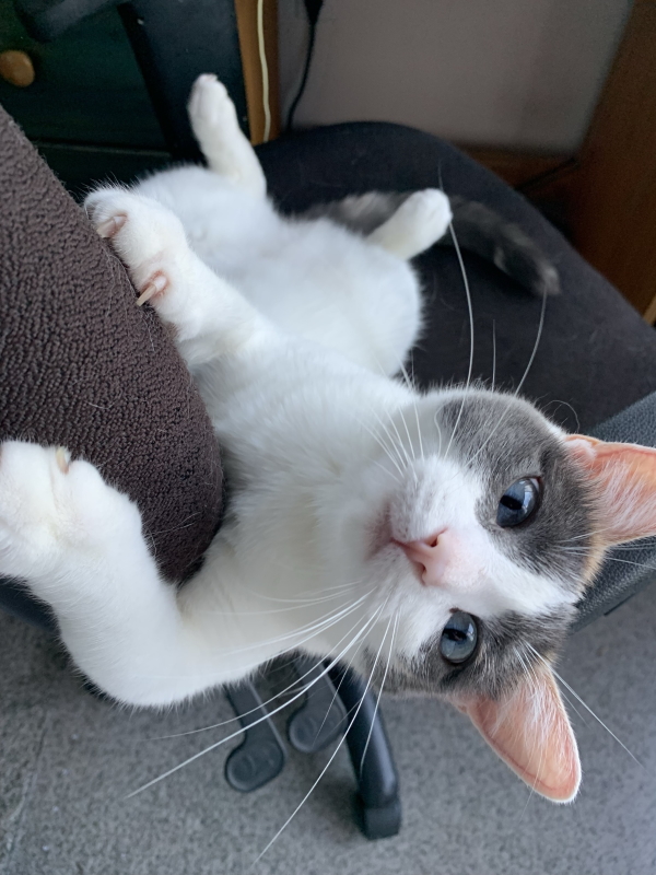 They kept reaching a paw out and touching, very gently, the other cat. And then there was running.