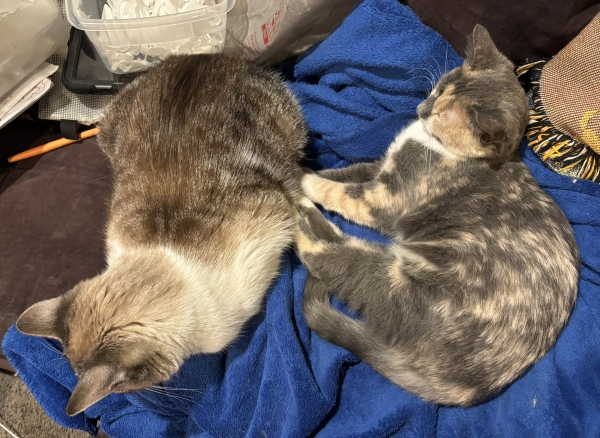 You’d think when it’s this cold that all the cats would be curled up. This was only because Bowie wanted the blue blanket and me.