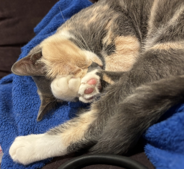 Anyway. Next step in the quilt. Scribble tends to follow me, so presumably she’ll be in the office while I iron. She’s set herself up before in the sleep spot Kitten used to frequent.