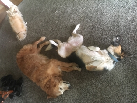 But he’d had a 4-mile walk and a bath because he pooped on himself and then vomited on himself. I wasn’t there. He was certainly tired out.