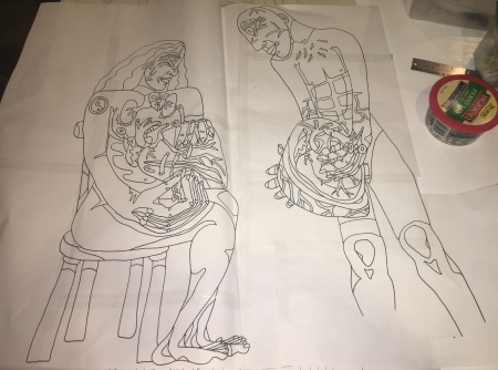 I found this applique again. It’s ancient. It deserves to be finished. I pinned some stuff to it. Haven’t sewn anything on this in a million years. I used to think I could hand applique art quilts.