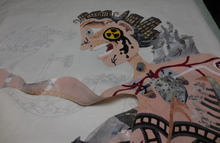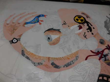 So first of all, this is Quilt+Resist at Woman Made Gallery in Chicago, Illinois, which opened last night. You can see my anti-gun quilt Rooted in America in the far back.