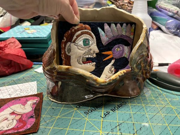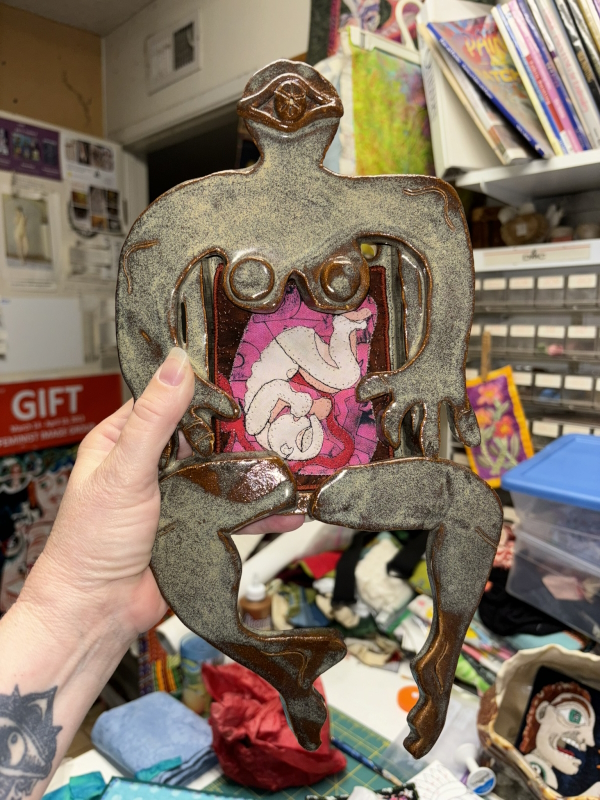 OK, today is teaching speed and velocity…pretty easy stuff. Then a 2-hour staff meeting about literacy. I’ve been prewarned that the scientific content is factually incorrect (oh good), so I’m prepared to be irritated. Then to clay, to hopefully underglaze some more and find my two glazed pieces. Then back here to pack up three quilts for shipping. Fun times. And more drawing, hopefully…get those boobs under control. On the drawing. Those are the only ones I can control.