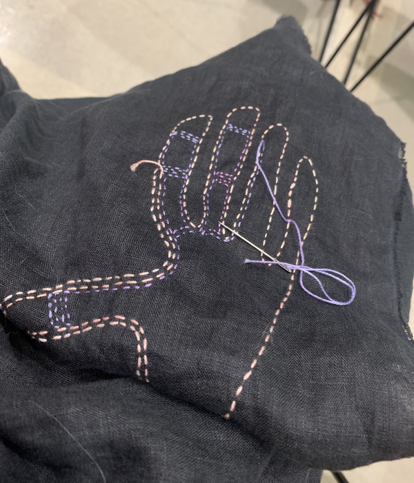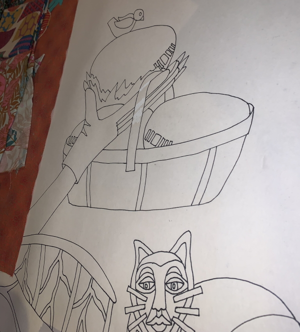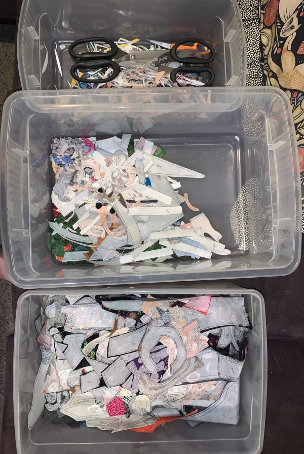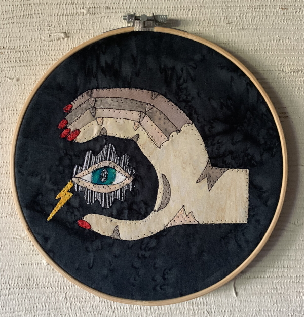 It’ll look better with outlining when I quilt it. That skeletal middle finger will be obvious.
