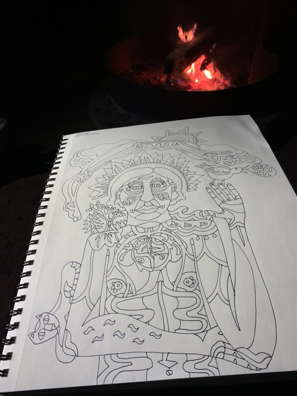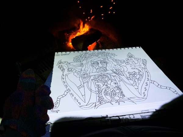 I drew both nights by the campfire…it’s kind of a tradition of mine. Staring into the flames, headlamp on, seems to help me just draw these days.
