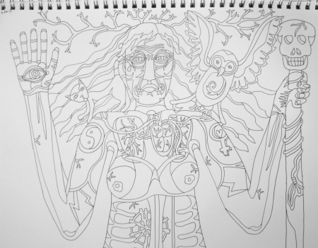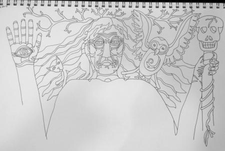 I did a crappy drawing at the table, but I’m out of practice. If I work on it some more, I might photograph it.