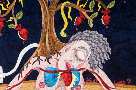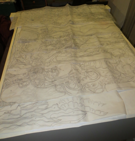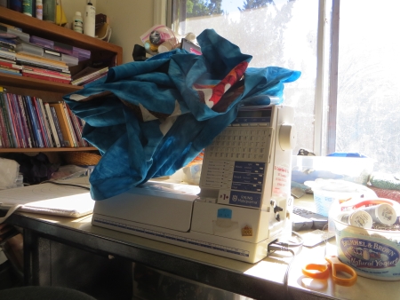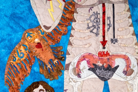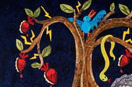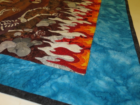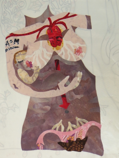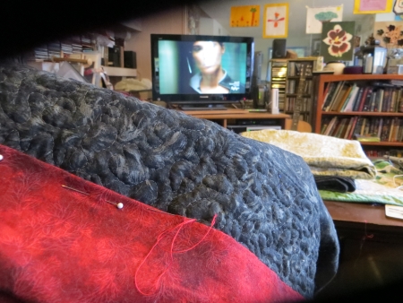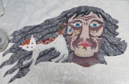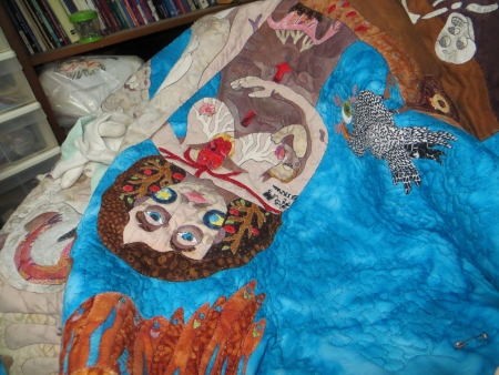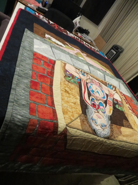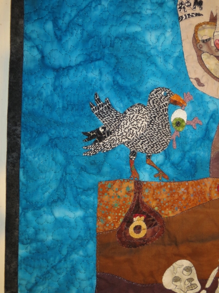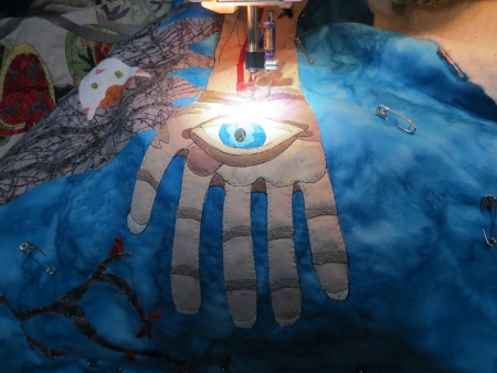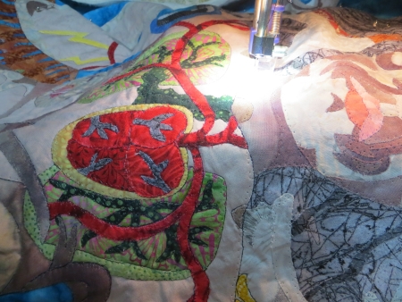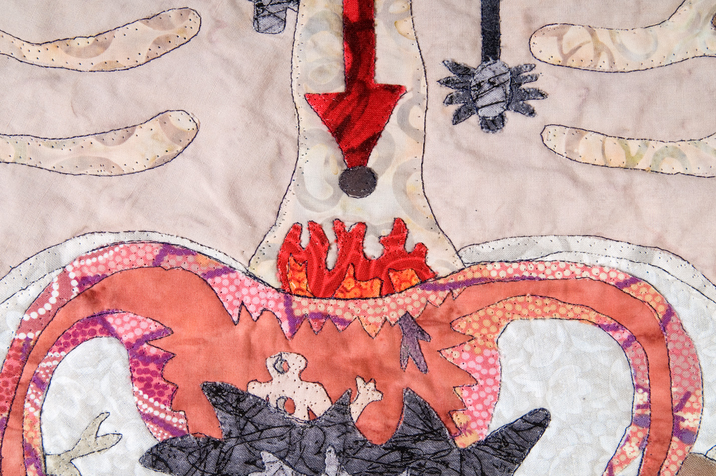 It was originally a drawing in a small sketchbook for a show that I thought an art group I am in was going to do in February, but the situation changed, and because I need so much lead time to make quilts, I was already well into finishing it when they came out with revised guidelines that were way smaller than anything I have that’s relevant.