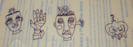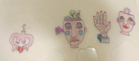 I want a whole stash of drawings ready to go…this one needed to be filled out on the right. I often run out of page (I have been drawing things off the page since 4th grade, maybe earlier…the problem is not solved by bigger paper) and have to tape bits on to finish the drawing. I need to draw feet for one other one I got taped…