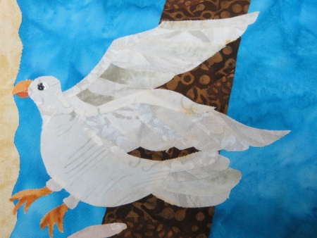 Once I had everything sort of tacked down on the background, I moved it to the ironing board and tried to do a better job of attaching it, spraying each section with water and heat-setting it for at least 30 seconds.