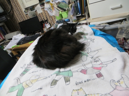 I set up the machine for the stitch-down phase, to start tomorrow. Meanwhile, it’s under that towel.