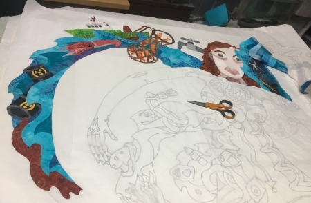 She’s 53” w x 43 ¼” h. She’s obviously about climate change and our general destruction of the planet…