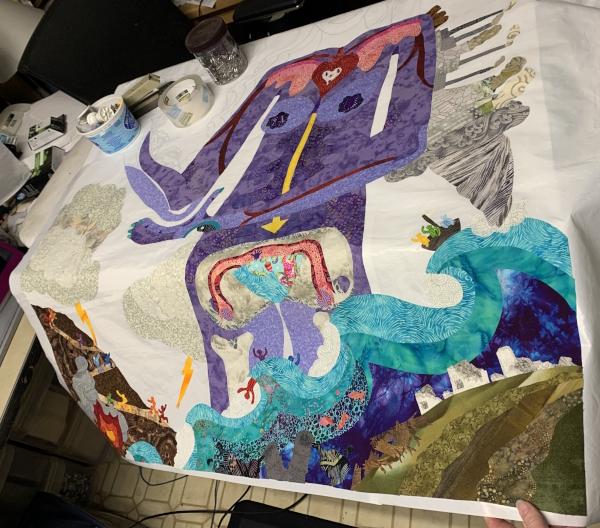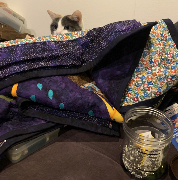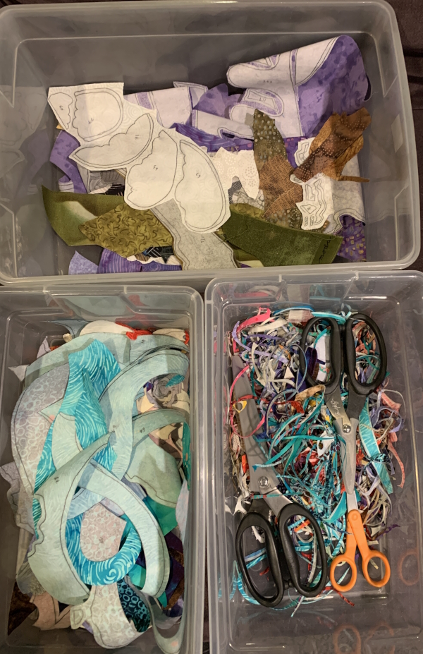 Sometimes it looks like I just move the bins around and don’t actually do anything. I’m in the mid 500s, but I’ve ironed a few 800s. So I’m halfway, at least. So I should finish ironing down probably early next week, then start trimming. My hope is to get it all ironed down over Thanksgiving break. Which they’re now calling Fall Break.