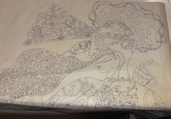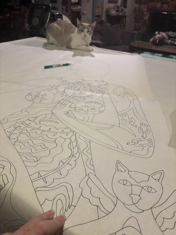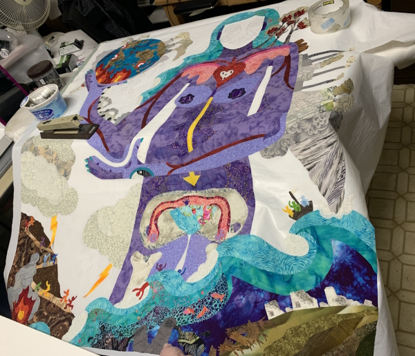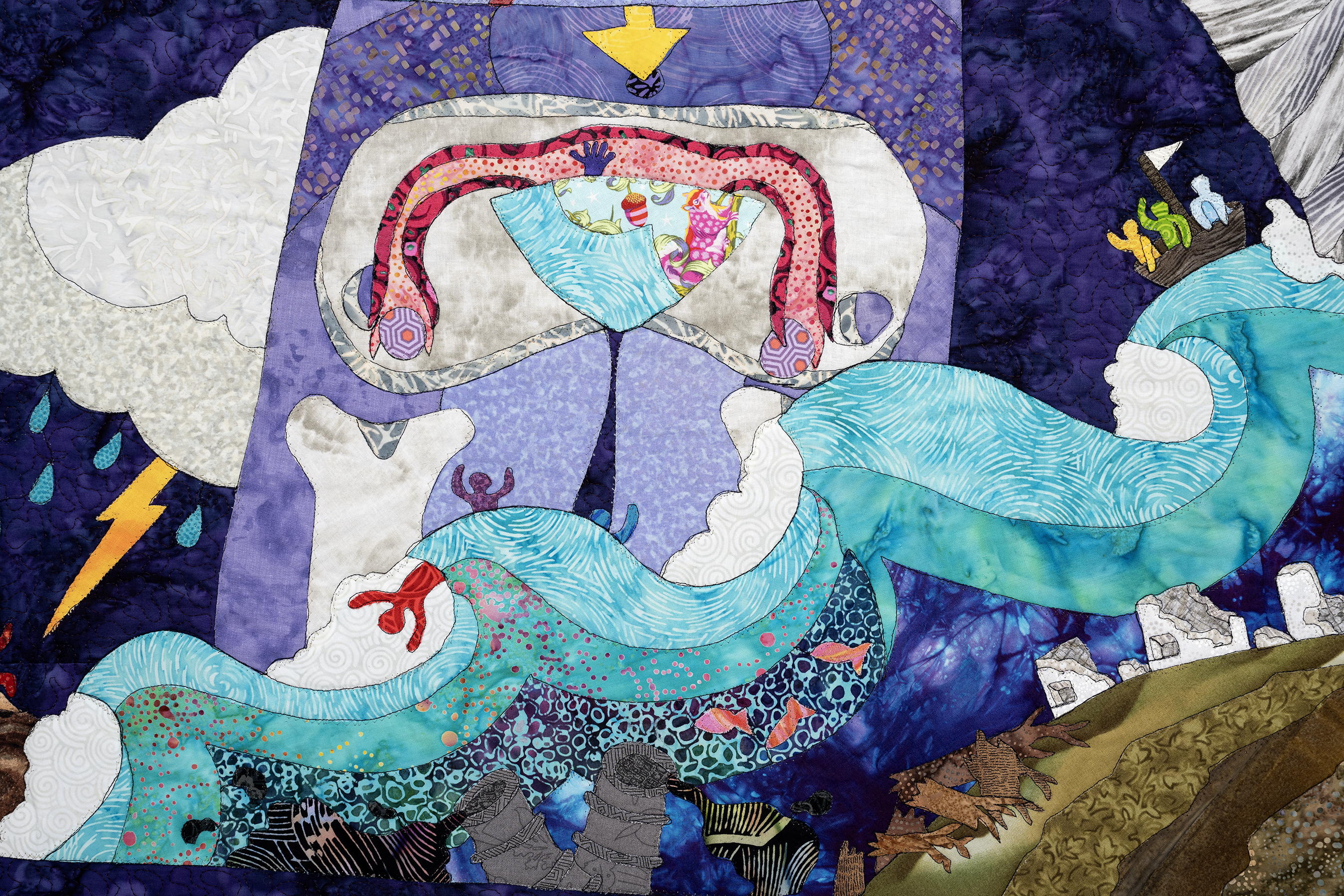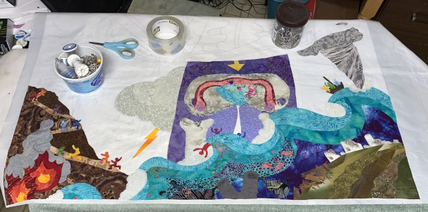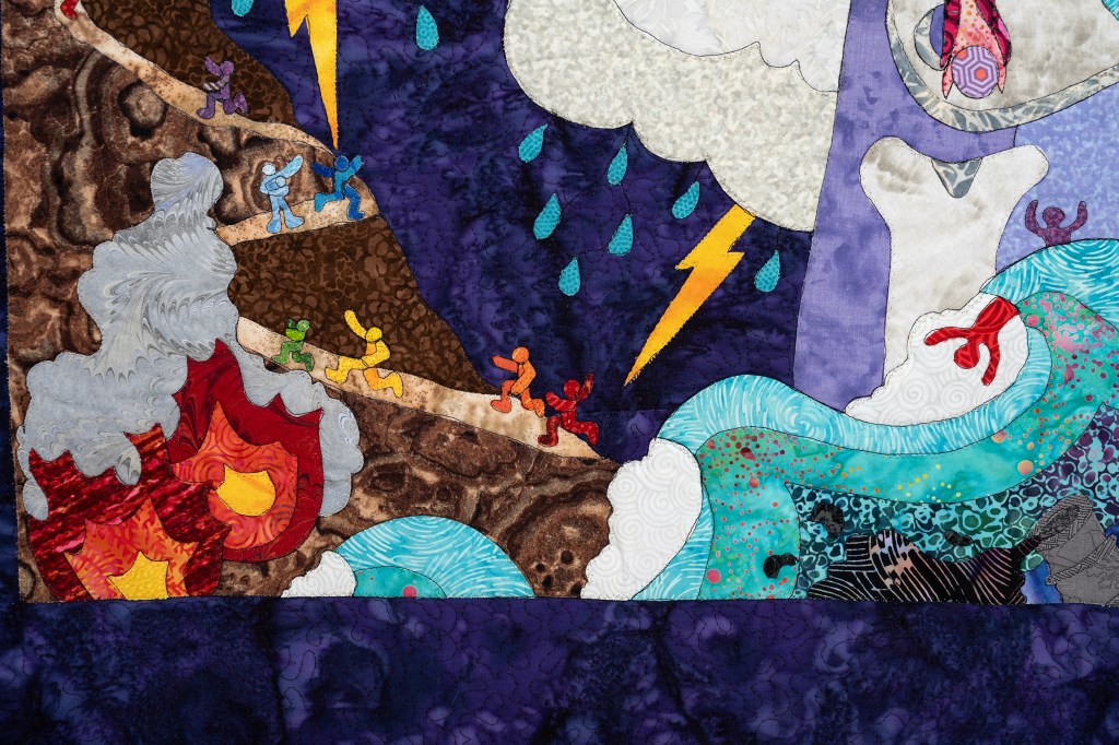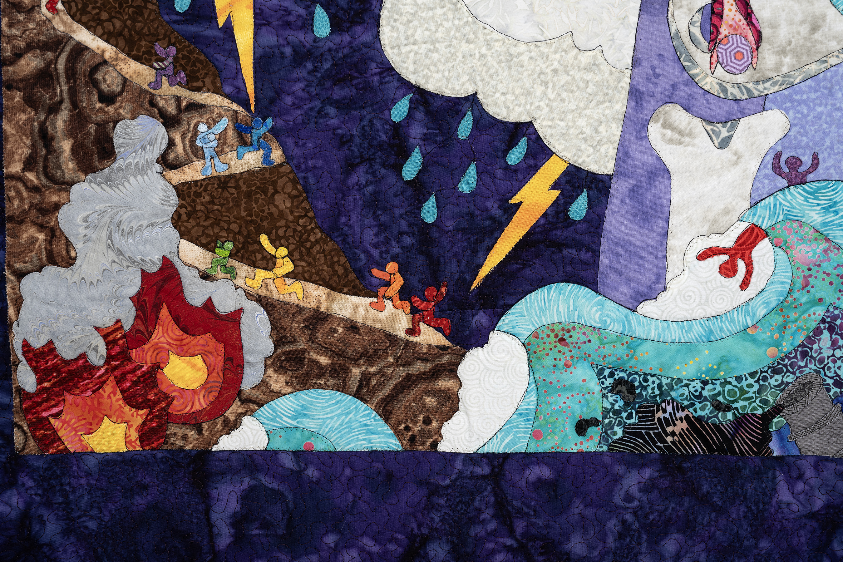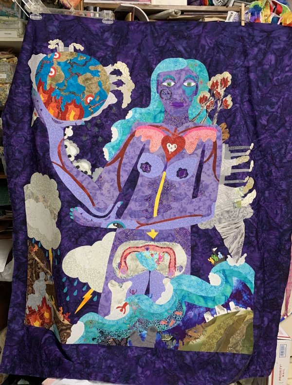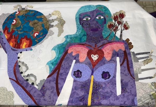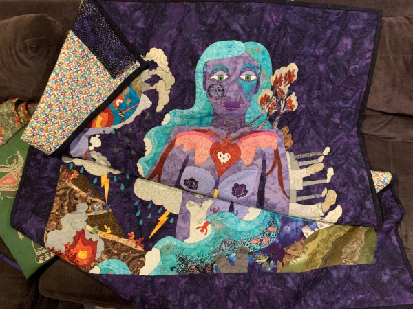 It’s the purple quilt on the right, with Anna Stump’s pinata/balloons flying over the border wall paintings to the left.