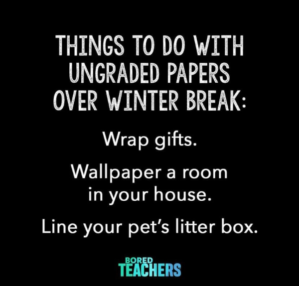 Short week, felt long, rain’s coming, another lab today. Collisions. And at least 5 kids per class period who didn’t show up yesterday and have to take the test today. Fun times. I have two kids who I think went home on purpose so they wouldn’t have to take the test. Ah well, they can miss the lab today. And the three kids who showed up yesterday for the first time in the last two weeks? Shocker for them. I read all these things and watch videos where they talk about treating each child individually, giving them what they need, but realistically, with 33 kids in the classroom and very little support, with 5 absent and a lab going, there’s very little giving kids what they need. I’m just hoping both my paraeducators are here today. And there’s an issue with a kid who didn’t finish after more than 90 minutes, with paraeducator support, plus tutorial, and there’s signs of cheating in the past (someone else is doing it for him), and our new anti-AI approach means he didn’t turn it in in time. So yeah. What do I do with that? I’m not sure. We’ll see. Today. If he’s here. Rain is going to scare some of our kids off. It’s not even supposed to be that bad today…it’s mostly tomorrow, but you know how that goes. Just easier to let them stay home? Meanwhile, my coteacher and I are planning our post-school duty post outfits (raincoats, boots, and umbrellas) because we’re responsible adults who do our jobs. Maybe too responsible. I rewrote an assignment last night, plus emailed parents (who responded right away, bless their hearts…some kid hates me today), and then dreamed vividly about a school reunion I didn’t go to and didn’t have anyone I recognized.