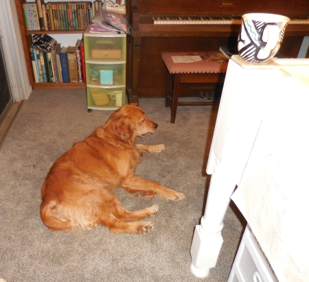 Mom delivered a new iron last night, but my exhaustion level almost took me to bed at 10. Then I remembered all those emails I was supposed to answer and some bills I had to pay and other things to be put right, so I did all that and then the clock said 11:45. Weird how that happens. I tried to get the dog to go to bed in my room, because that’s where she ends up anyway, but she was having none of it. I think she really wanted to sleep ON the girlchild’s bed, but I haven’t finished the 8 loads of laundry yet, so that wasn’t an option. Moved her bed back in her mom’s room. Went to bed myself. Dog in my room 10 minutes later, whining. Do you need water? Like having a 2-year-old. No water. Just whiny. Go to bed, you silly dog. You’re not sleeping ON the bed with me.