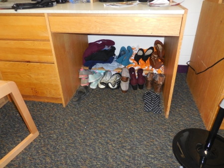 It sucks to be on the top bunk…no underbed space. So underdesk space it is (trust me, I tried to find another option. It’s her problem now).