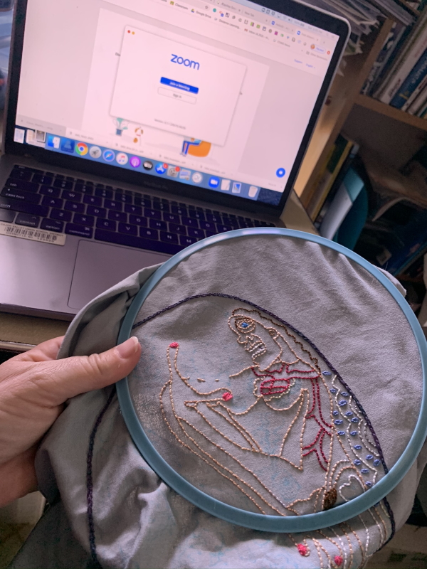 And I had an in-person, socially distanced social meeting today in a park, and I kept stitching on it.
