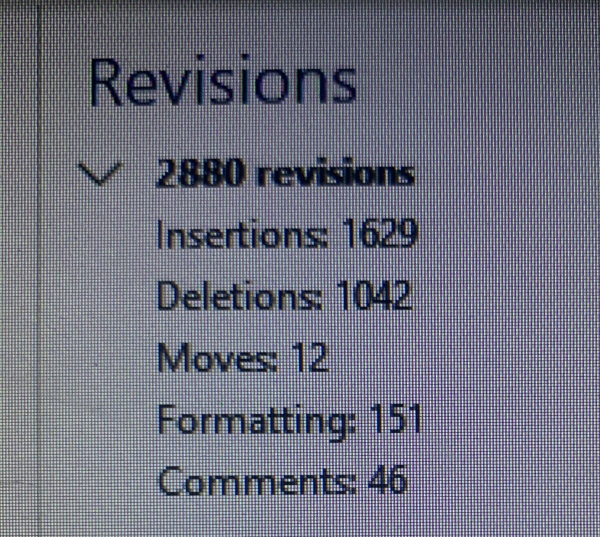 Not bad. I deleted a lot of those comments too, because we resolved them before I sent it back. It’s just easier that way. Those were mostly reference issues. This is my 5th book with this author, which is nice, because it’s easier to figure out their patterns when you continue to work with them. Luckily, he likes what I do. I don’t do a lot of copyediting, usually only one or two projects a year, just to help with some of the additional expenses that come up. This money will be for tree trimming. I’m debating whether to get it done now (probably the best plan) or wait until after summer, when I know I won’t need the money for the summer. I don’t get paid for teaching again until the end of August, which is a little painful. I try to plan for it, but no one plans for a pandemic, right? Well, maybe we should from here on out.