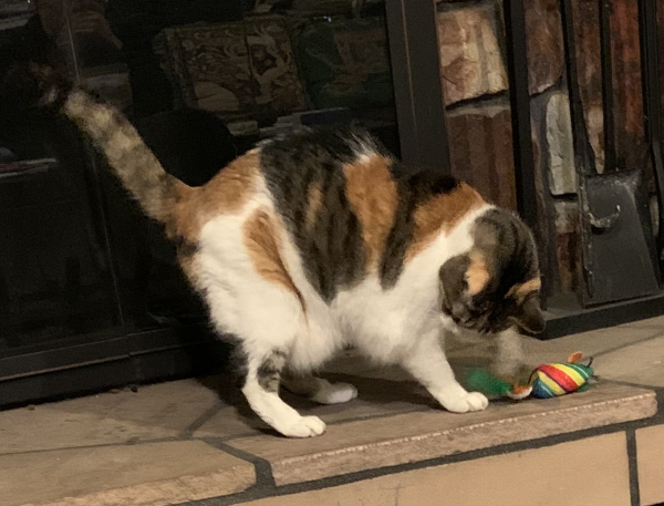 Meanwhile the cats hide for most of Christmas…except for when the dog is gone and they can come out and play with boxes and new toys…I only caught Kitten in photos though.