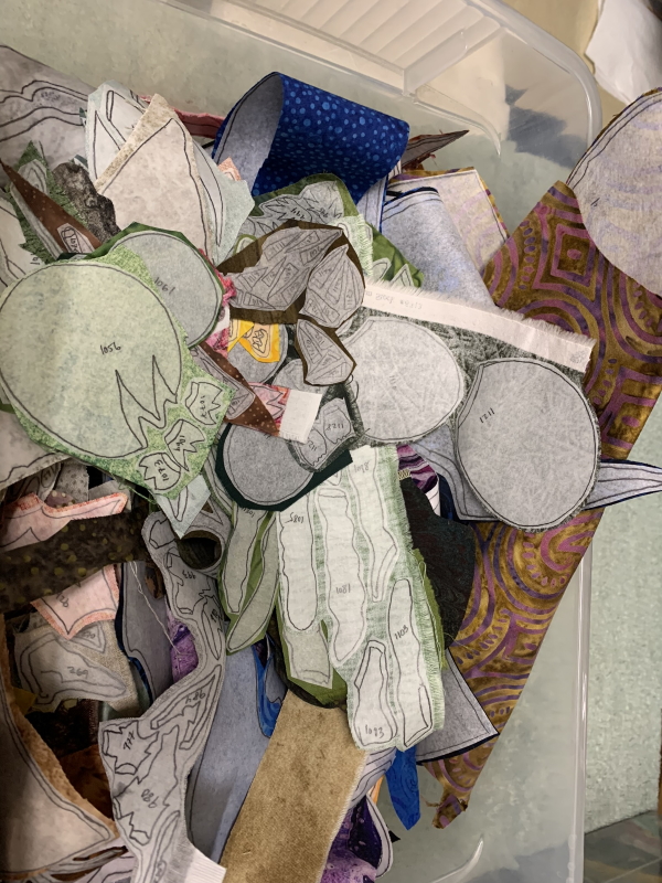 I need to piece the background and then iron everything down to it. I have 21 hours into the ironing so far. This is ALSO not a fast process.