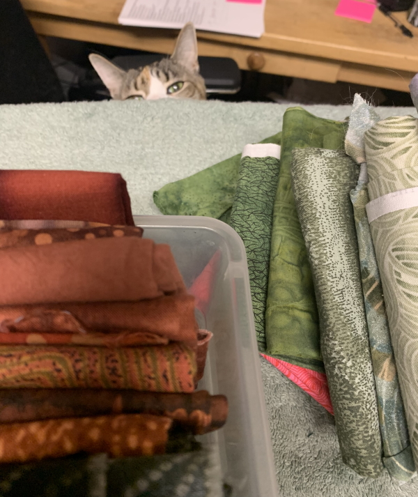 So many greens really. And browns. Should be interesting to see it all come together. Kitten seems interested anyway.