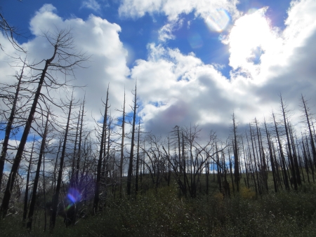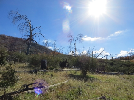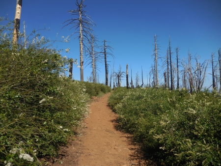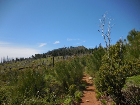 Trees are still dying and falling from the fires, and there are huge sections where the tree parts are just piled by the side of the trail.