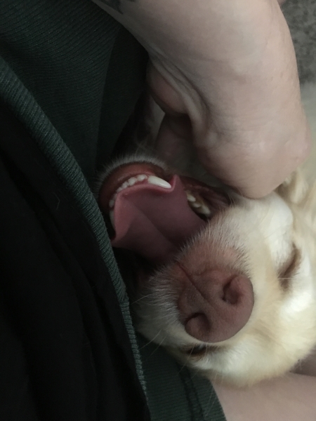 Puppy on my lap…I’m still in that state where I come home from school and half-collapse on the couch.