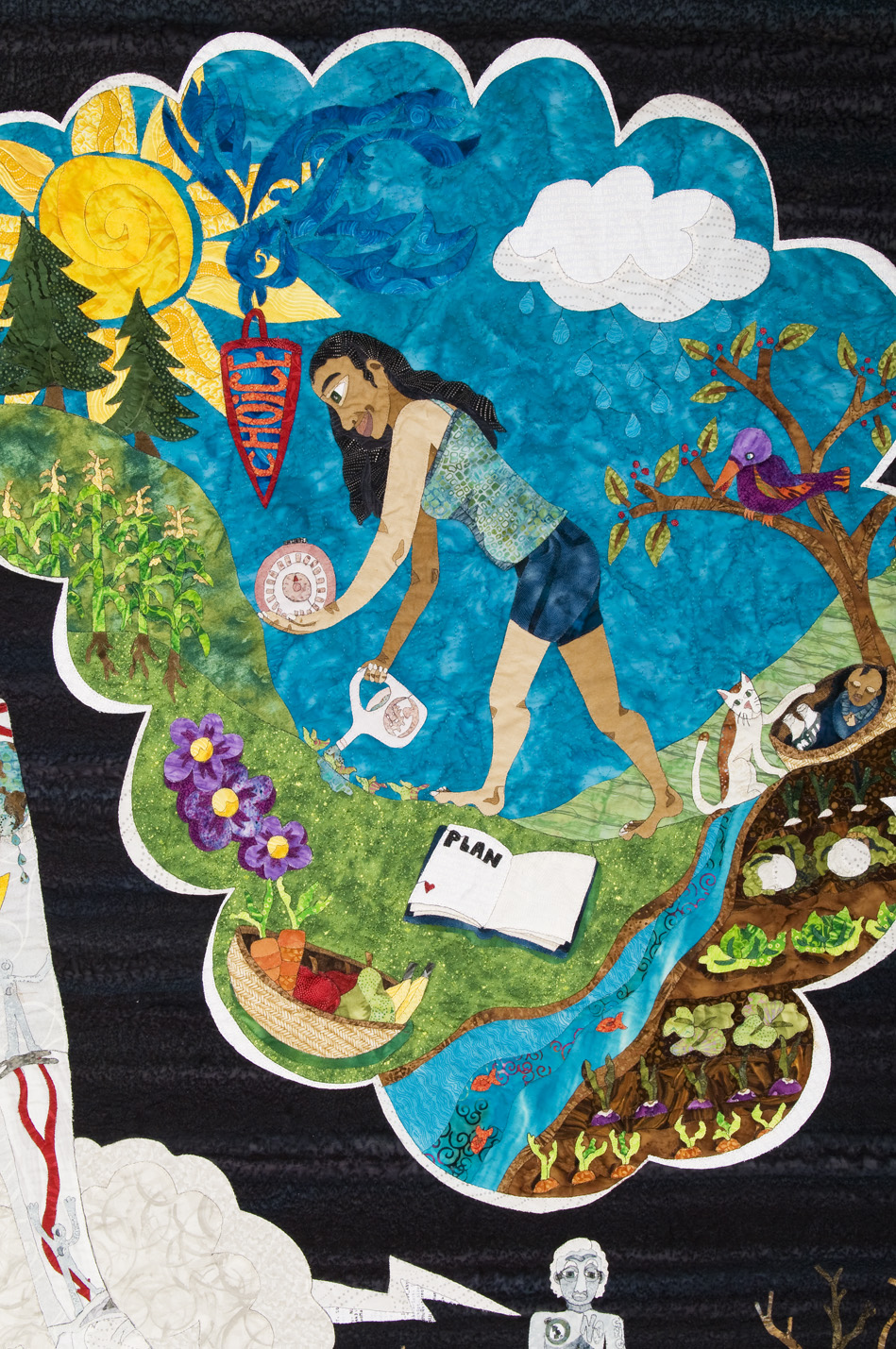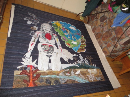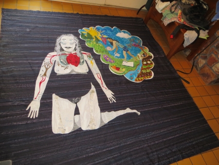 It was part of the Earth Stories exhibit and hasn’t been seen locally, I think. It traveled a lot and then got rolled up. It’s all about birth control and giving women the right to plan families and childbirth…ironically very similar to what I’m working on in the current drawing. Things don’t change. I wish they would, but they don’t seem to.